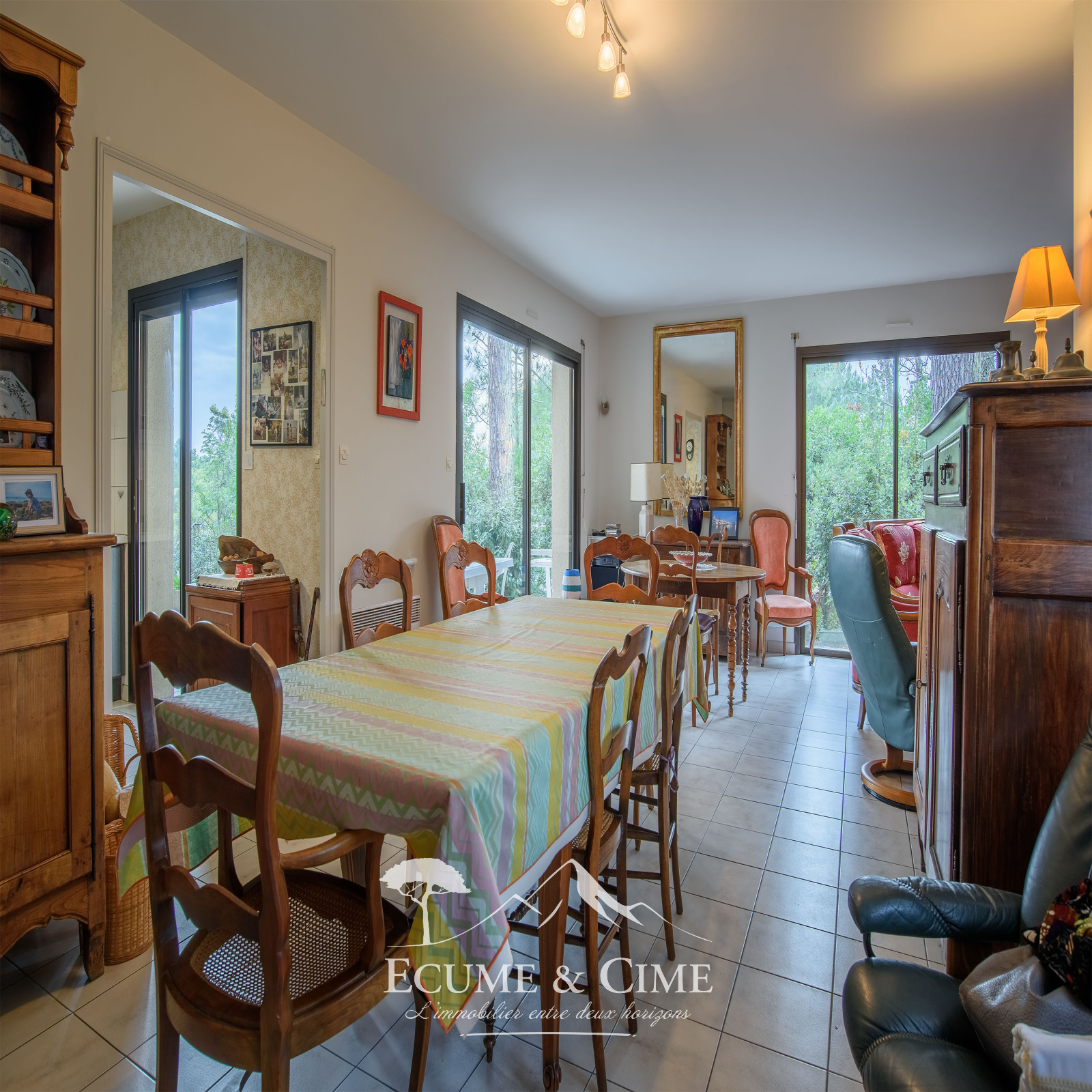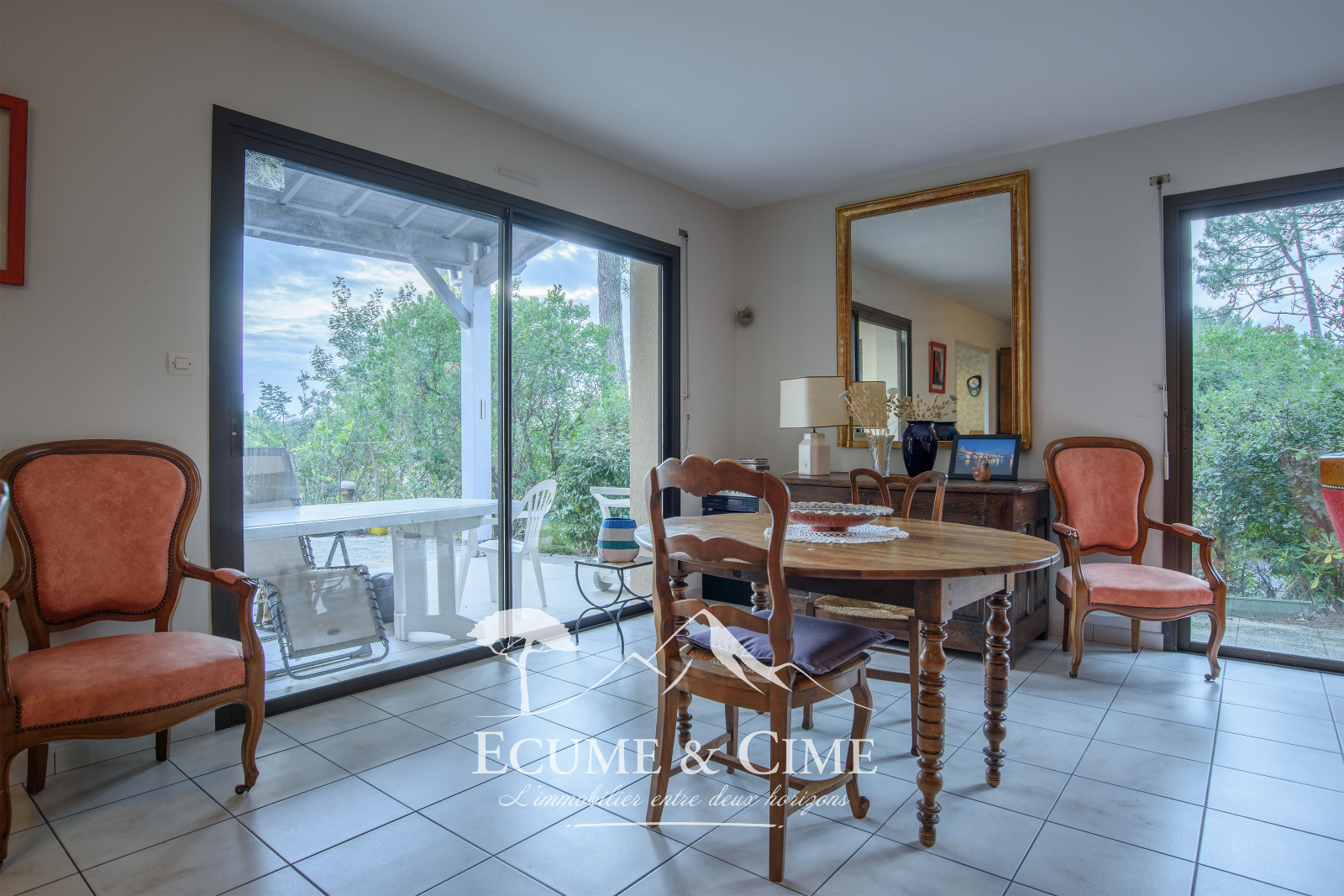 Edifié dans les années 90, la villa développe une configuration idéale à repenser: quatre chambres, une cuisne séparée, un double séjour, deux salles d'eau, deux toilettes.